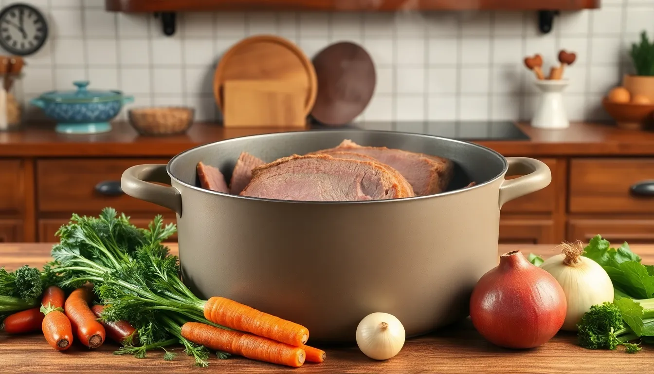 A few tools simplify the boiling process. A large pot is essential for accommodating the size of the brisket and the water. A lid helps retain heat and moisture effectively. A meat thermometer ensures the internal temperature reaches a safe level, typically around 200°F for tender results. Tongs allow easy handling of the meat during preparation. A cutting board becomes necessary for slicing the cooked corned beef. Finally, serving utensils complement the dish, making it easy to enjoy once cooked.